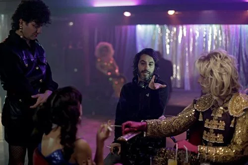 Marc Vigil, director de 'El Ministerio del Tiempo', da indicaciones a Carlos Santos, que se pone en la piel de Pedro Almodóvar en la serie de TVE, Onza y Globomedia (The Mediapro Studio).