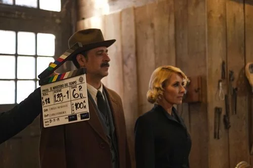 Nacho Fresneda y Cayetana Guillén Cuervo en el rodaje de la cuarta temporada de 'El Ministerio del Tiempo'