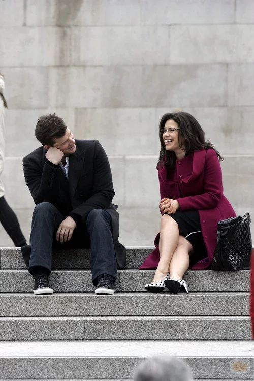 Eric Mabius y America Ferrera ruedan el final de 'Ugly Betty' en Trafalgar Square, Londres.