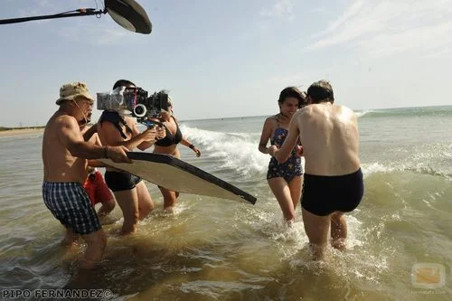 El equipo de producción se trasladó, junto con Adriana Ugarte, a la orilla del mar para rodar una escena de la nueva serie de Antena 3.
