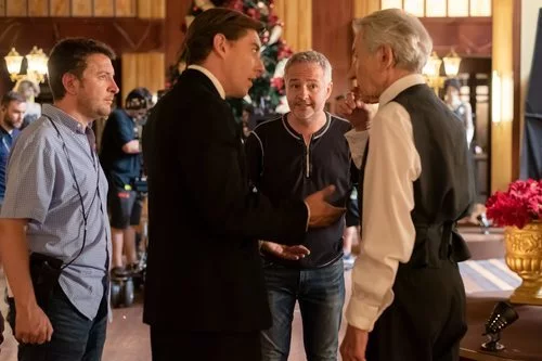 Adrián Lastra y José Sacristán conversan durante la grabación del final de 'Velvet colección'