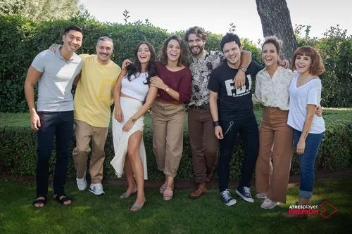 Los alumnos de 'Física o química' regresan con la miniserie 'FoQ: El reencuentro'. De izquierda a derecha: Andrés Cheung, Adrián Rodríguez, Andrea Duro, Leonor Martín, Maxi Iglesias, Adam Jezierski, Sandra Blázquez y Angy Fernández.