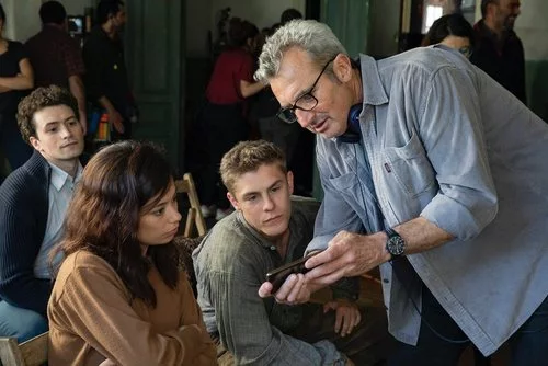Anna Castillo y Patrick Criado junto a Mariano Barroso en el rodaje de 'La línea invisible'
