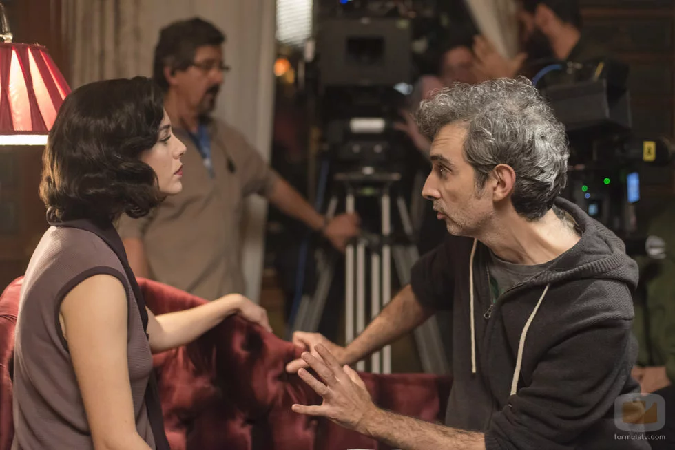 Blanca Suárez recibe indicaciones durante el rodaje de 'Las chicas del cable'