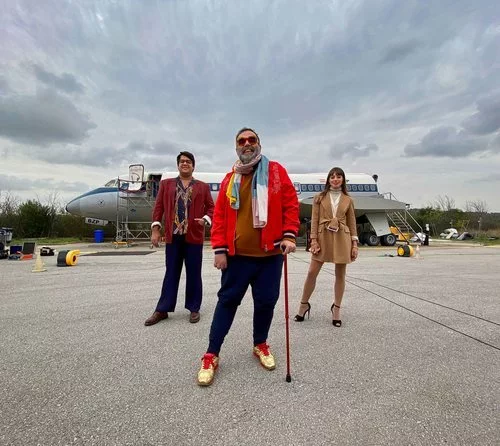 Bob Pop junto al actor Carlos González en el inicio de rodaje de la primera temporada de la serie 'Maricón perdido' de TNT.