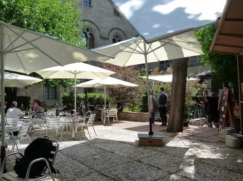Imagen del rodaje de 'Merlí: Sapere Aude', el spin-off de 'Merlí', que se ha grabado en Barcelona, por los exteriores de la Universitat de Barcelona.