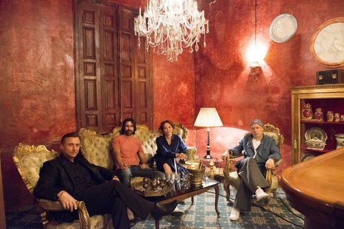 Los cuatro protagonistas de 'Nasdrovia' en el set de rodaje