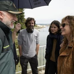 Nancho Novo, Gonzalo López-Gallego, Alba Galocha y Emma Suárez en el rodaje de 'Néboa'