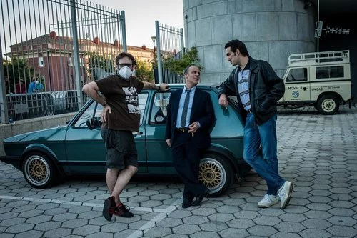 Carlos Therón, Miki Esparbé y Javier Gutiérrez en el rodaje de 'Reyes de la noche'