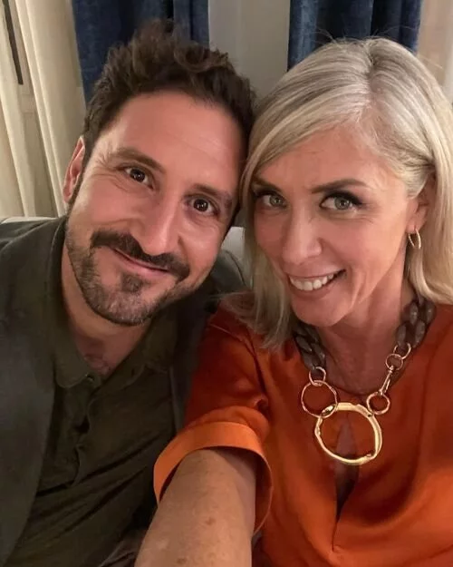 La intérprete de Maite Figueroa posa junto a la nueva pareja de su personaje, Alonso (Álex Gadea), durante el rodaje de la serie de los hermanos Caballero.