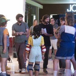 Millie Bobby Brown, Sadie Sink y los hermanos Duffer en el rodaje de la tercera temporada de 'Stranger Things'