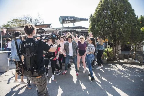 Miki Núñez, junto a los figurantes del videoclip de "La venda"