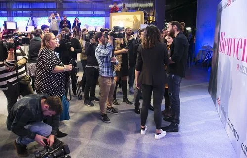 El actor turco Can Yaman ('Erkenci Kus', 'Dolunay') rodeado por reporteros y cámaras de medios españoles que acudieron a la rueda de prensa por motivo de la visita del intérprete.