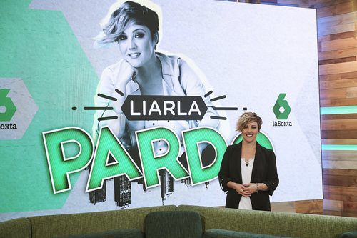 La periodista es la conductora de 'Liarla Pardo', un magacín de Cuarzo Producciones que mezcla entretenimiento con información. Posa junto al sofá central del programa, en el centro del plató.