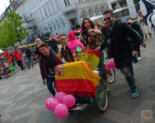 Ruth Lorenzo monta sobre una bicicleta junto con varios fans durante su quedada con los eurofans en Copenhague durante el Festival de Eurovisión 2014.