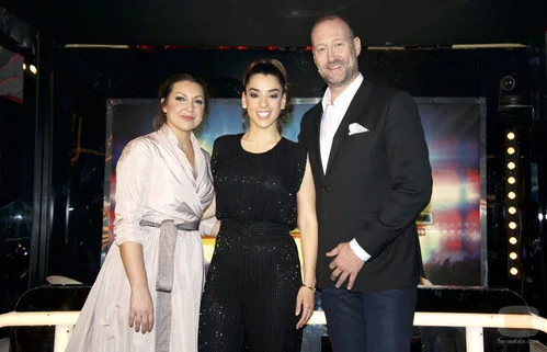 Ruth Lorenzo, Niña Pastori y Pedro García Aguado en la sexta gala del talent show familiar de Telecinco, que presenta Jesús Lorenzo.