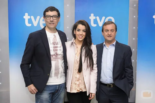 La cantante posa con director del Área de Televisión de TVE y el director de Festivales de la cadena pública.