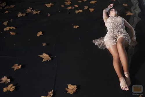 Ruth Lorenzo tumbada en el suelo en el videoclip de "Dancing in the rain"