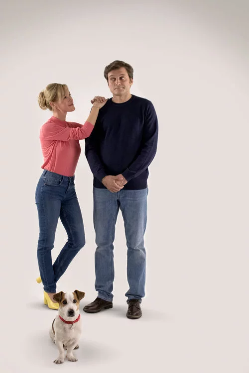 Marta posa mirando a su cuñado Alberto y junto a Max, el gran protagonista de la nueva serie de TVE, 'Sabuesos'.