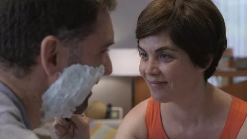 Imagen de Samanta Villar en su nuevo programa, 'La vida con Samanta' en la que se encuentra afeitando a uno de sus entrevistados.