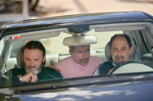 Fermín Trujillo, Coque Calatrava y Antonio Recio juntos dentro de un coche durante la tanda final de episodios de la temporada 12 de la serie de Telecinco.