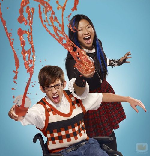 Foto promocional de Kevin McHale y Jenna Ushkowitz, Artie Abrams y Tina Cohen-Chang en la segunda temporada de 'Glee'.