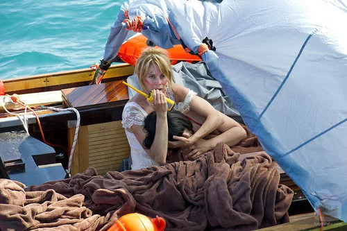Leonor abraza a Dulce mientras intenta contactar con alguien desde su pequeña balsa.