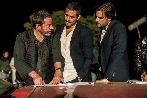 Enrique Urbizu da directrices a Isak Férriz y Daniel Grao en el rodaje de la segunda temporada de 'Gigantes'