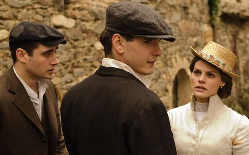 Amaia Salamanca, Yon González y Llorenç González en una escena de la segunda temporada de 'Gran Hotel'