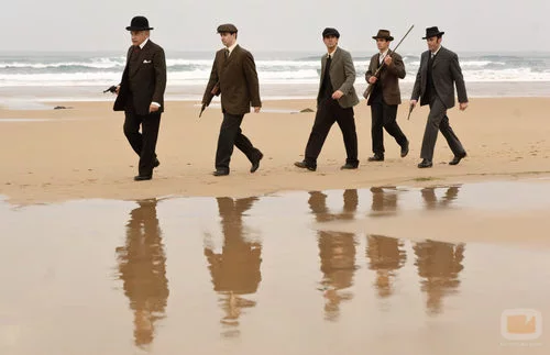 El detective Ayala camina con su equipo por la playa en 'Gran Hotel'