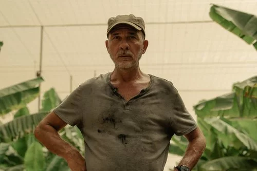 Díaz, el personaje que interpreta Darío Grandinetti, mira al frente mientras está rodeado de plantas en un invernadero en la segunda temporada de la serie de Movistar+.