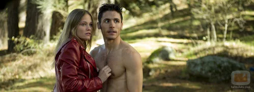 Leire y Ricky sorprendidos en el bosque en la segunda temporada de 'Luna, el misterio de Calenda'.