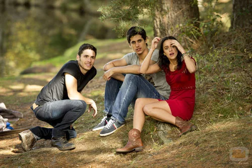 Ricky, Pablo y Vera juntos en el bosque en la segunda temporada de 'Luna, el misterio de Calenda'.