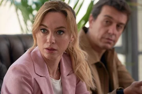 Los actores Marta Hazas y Javier Veiga dan vida a la pareja protagonista de la serie 'Pequeñas coincidencias'. Marta Valdivia, el personaje interpretado por Hazas está desconcertada en una de las escenas de la segunda temporada.