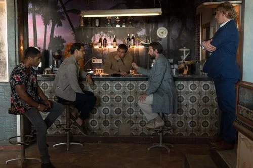 Los ladrones de 'Snatch' planean sus próximos movimientos en un destartalado bar de estética retro presidido en su barra por Harry, interpretado por Tamer Hassan.