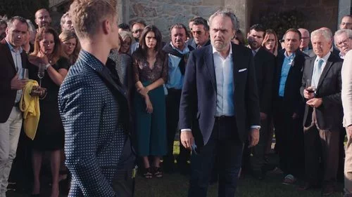 Daniel Arteaga (Patrick Criado) y Nemo Bandeira (José Coronado) rodeados por un corrillo de gente en el 2x01 de 'Vivir sin permiso'. En el fondo se encuentran Lara Balarés (Claudia Traisac) y Ferro (Luis Zahera).
