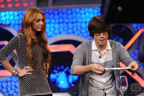 Miley Cyrus observa los trucos de Luis Piedrahita en su segunda visita a 'El hormiguero'.