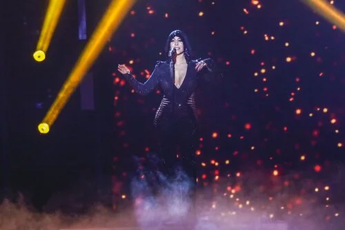 La también presentadora de la preselección española arrancó la cita al ritmo de "Diva", con una prenda que cubría su cambio de look.