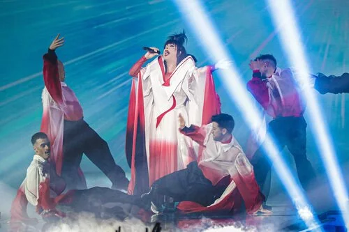 Sharonne canta "Aire" junto a sus bailarines en la primera semifinal del Benidorm Fest 2023