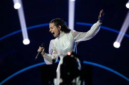La cantante Amanda Tenfjord, que representa a Grecia, interpretó "Die Together" en la primera semifinal de Eurovisión 2022.