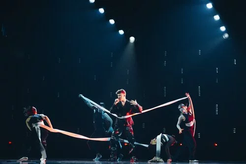 El representante de Suiza interpreta su canción "Watergun" sobre el escenario de Liverpool 2023 en Eurovisión.