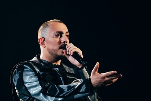 El representante de Azerbaiyán se sube al escenario de Malmö para interpretar la canción 'Ozünle Apar' durante la Semifinal 1 de Eurovisión 2024.