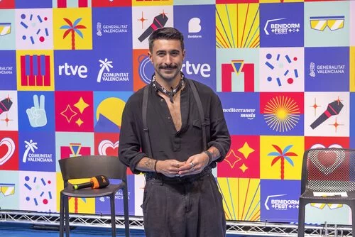David Martínez Álvarez, más conocido como Rayden, posando en la rueda de prensa tras clasificarse en la Semifinal 2 del Benidorm Fest.