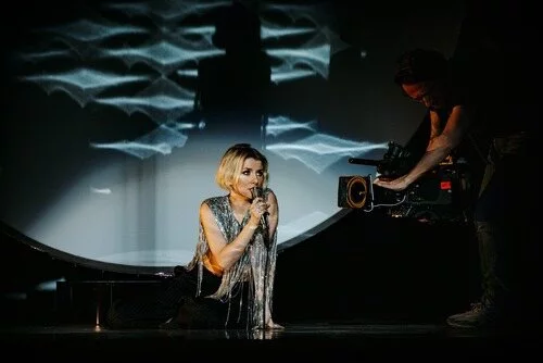 Cornelia Jakobs, abanderada sueca durante la Segunda Semifinal de Eurovisión 2022 mientras interpreta "Hold Me Closer".