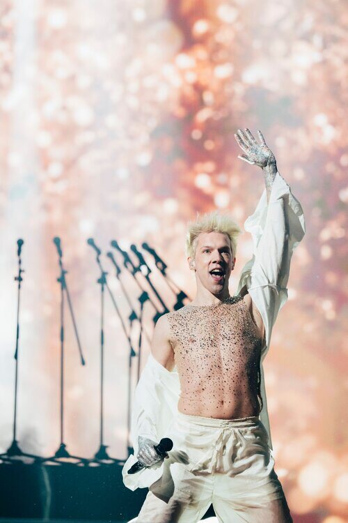 El artista belga interpreta el tema 'Before the party's over' sobre el escenario de la segunda semifinal de Eurovisión 2024.