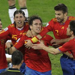La Selección Española celebra el gol de Puyol