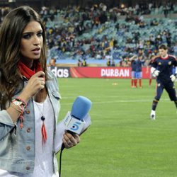 Sara Carbonero, a pie de campo durante la semifinal