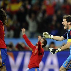 Íker Casillas celebra el gol de Puyol en la semifinal