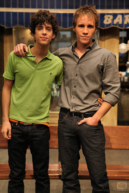 Eduardo Reina (Fidel) y su novio en la ficción, Bernabé Fernández (Marcial), en la séptima temporada de 'Aída'.