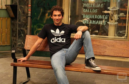 Paco León sentado en un banco